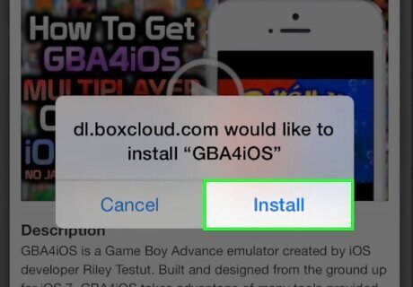 Tap "Install" to install the GBA4iOS app. Tap "Confirm" to begin downloading the app.