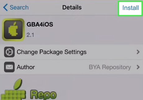 Search for "GBA4iOS". GBA4iOS is now included in the Cydia repo, which means you can download it directly from the Cydia app. Search for it and then tap GBA4iOS in the results. If you want to play the Nintendo DS versions of Pokémon (Diamond, Pearl, Platinum, HG SS, Black, White, B2, and W2), you will need the NDS4iOS emulator, which can be installed the same way.