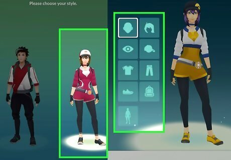 Design your trainer avatar. After accepting the terms and conditions and an introduction from Professor Willow, you'll be taken to the picture of two avatars. Tap your preferred presentation and you'll be taken to a screen where you can edit different physical features of your avatar. Edit your features by tapping on the different sections of each and using the arrows to toggle between different looks. Tap on the checkmark at the bottom-right corner of the screen when you are finished designing your avatar. You're ready to go!