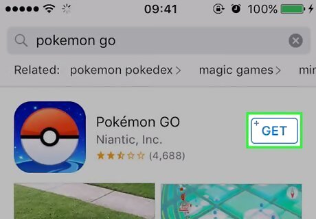 Download the Pokémon GO app. Find the Pokémon GO app in the results. Tap the GET button at the top-right corner of the results bar. You may be prompted to enter your Apple ID password. After doing this, you should see the app begin to download.