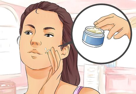 Exfoliate regularly.Exfoliation is one of the simplest and easiest ways that you can help your skin fight multiple signs of damage and aging. Try a leave-on exfoliating cream. These creams are primarily formulated with fruit acids, glycolic acid or alpha and beta hydroxy acids, any of which help facilitate faster exfoliation, regeneration, and renewal. Avoid permanently damaging your skin by closely following manufacturer’s instructions.