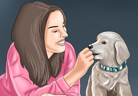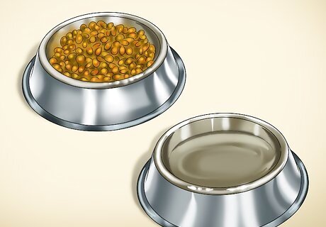Get an appropriate food and water dish. Whether you want to be fancy about it is down to you, but make sure your puppy can reach the bowl effortlessly. Additionally, don't leave food in the bowl so the puppy can help itself when it wants to. Set feeding times, and ensure your puppy gets regular meals throughout the day. As it gets older, you can decrease the amount of meals it gets to as low as once a day.
