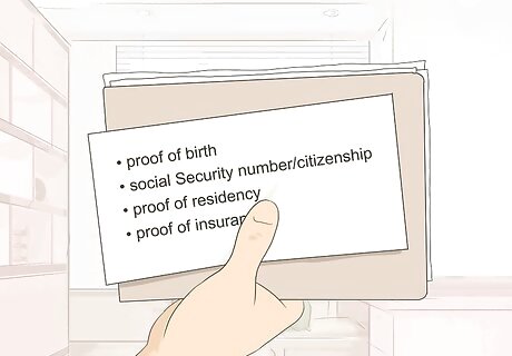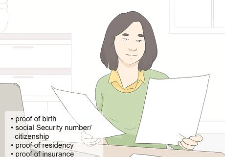 Gather your required documents. To get a driver's license, you must show 1 original document that proves your identity and birth date, 1 document that shows your Social Security number or legal presence in the US, and 2 documents that show your legal address of residence in the state of North Carolina. You also must have proof that you have liability insurance. Acceptable documents include the following: Identity/birth date: valid US passport, US birth certificate, certificate of naturalization, certificate of citizenship, valid US military ID Social Security number: Social Security card, W-2 form, passport with US visa Proof of residency (for adults 18 and over): Preprinted bank or corporate statement with your name and address, pay stub with your name and address, lease or mortgage, receipt for property taxes, current auto insurance policy with your name and address Proof of insurance: insurance policy, insurance card with your name and policy numberTip: All of the documents you bring must match the name you currently use. If you've changed your name, you must also bring certified evidence of the name change, such as a marriage certificate, divorce decree, or court order.