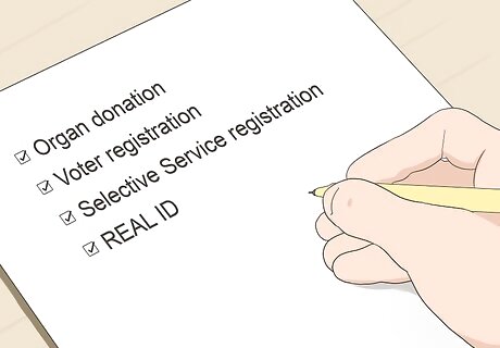 Sign up for other registries or programs if necessary. When you get your first license, you also have the ability to sign up for other programs. Most of these programs are optional. You can change your enrollment at any time. Other programs available include: Organ donation Voter registration Selective Service registration: required for all men 18 to 25 years old, unless you meet one of the narrow exemptions REAL ID (allows travel on commercial airlines and entry to federal facilities, including military bases)