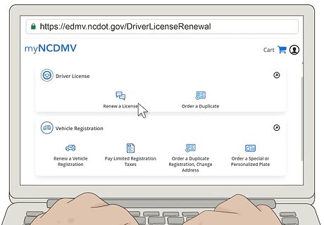 Go online if you meet the requirements. Not everybody can renew their license online, but if you can, it's far more convenient than renewing in person. To renew your license online, go to https://edmv.ncdot.gov/DriverLicenseRenewal and agree with the identity statement to get started. You can complete your renewal up to 6 months before your license expires. Generally, you cannot renew online if you: Have a suspended license Owe money to the DMV Have any restriction on your license other than corrective lenses Need to renew a commercial license or limited learner permit Are not a US citizen Need to change your addressWarning: If you have a regular driver's license that is not suitable for federal identification and want to upgrade it to a REAL ID, you cannot do this online. You'll have to complete your renewal in person.