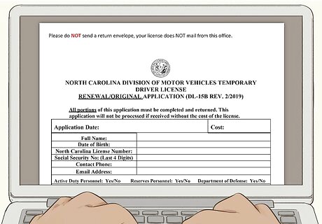 Complete a mail renewal if you're temporarily living out of state. If you have a permanent address in North Carolina but are living out of the state for at least 30 days, you can renew your license by mail. You can only do this once every other renewal cycle. Renewal by mail is also available for military stationed out of the state or overseas. Download the out-of-state renewal packet at https://www.ncdot.gov/dmv/downloads/Documents/out-of-state-renewal-packet.pdf and follow the instructions. Make sure you complete the packet well before your license expires, so you have plenty of time to get your new one.