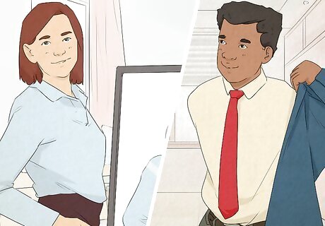 Dress in formal clothes. First impressions with your interviewer are important, so you'll want to look your best. The rule of thumb is to dress one notch higher than what work attire will be for this company. If you'll be working in a shorts and a t-shirt, don a button down shirt and slacks. Wear a blouse, blazer, and pencil skirt if the dress code asks for business casual. Pick clothes you feel comfortable and confident in so you're nor squirming or self-conscious during the interview. When in doubt, email your interviewer to ask what appropriate dress attire is for their company.