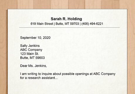 Send your cover letter and resume via email or in person. If you can print out and bring in your resume and cover letter, ask if you can do so. This will give them a face to match with the name and show that you're a serious employee. If not, however, insert the cover letter into the body of your email and include your resume as a file. Ask before you deliver a resume in-person. Some employers strongly prefer a digital resume over a print copy.