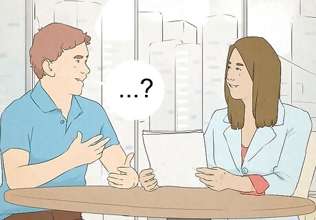Practice interview questions with a friend or family member. Find and print a set of interview questions online, and ask a loved one if they'll read you the questions for practice. At the end of the interview, ask them what their first impressions were and what advice they have. Tell them you want an honest opinion so you receive constructive criticism. Possible interview questions could include: How did you learn about the opening? Why do you want this job? Tell me about a time you disagreed with a decision. What did you do? Where do you see yourself in five years? Out of all the other candidates, why should we hire you?