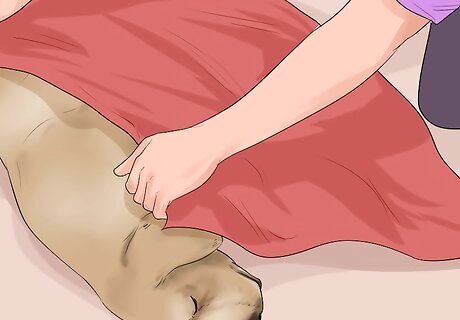 Cover your pet with a blanket. After your pet has been electrocuted, covering him with a blanket will help prevent heat loss. Wrapping him in a blanket can also prevent electrocution-induced shock. If your pet is so agitated that it looks like he may bite you, wrapping him in a blanket can help restrain him and keep him from biting you. Muzzling him could also keep him from biting you, but you should not do this if he is having trouble breathing.