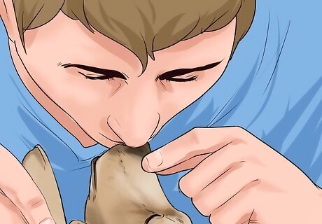 Breathe for your pet. It is best for your veterinarian to resuscitate your pet after electrocution. However, if you cannot get your pet to your veterinarian right away, you may have to make an initial attempt to get him breathing again. AR involves you placing your mouth next to your pet’s nose and breathing into his nostrils. Use this on a dog or cat. Before performing AR, open your pet’s mouth to clear out any foreign particles or objects that may be in the way. Pull his tongue out of the way so you can close his mouth more easily. Breathe for your pet, every four to five seconds, until you see his chest expand. After each breath, remove your mouth so his lungs can deflate. If you do not see chest expansion, hold his mouth shut and blow with more force every two to three seconds. Keeping his mouth closed keeps the air from exiting out of his mouth.