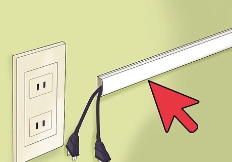 Cover or hide electrical cords. For pets that are extremely inquisitive, like kittens, and puppies, it can be very tempting for them to gnaw on electrical cords. To keep them from doing this, consider purchasing a cover that you can slip over the cords. These covers are available at your local electronics store. Covering the cover also keeps them organized, especially if you have multiple power cords in one place. You could also spray the cords with a bitter-tasting spray, which is available at your local pet store. As best you can, hide the cords close to the walls behind your furniture. If the cords are short, you could attach an extension cord to them so you can push them behind the furniture.