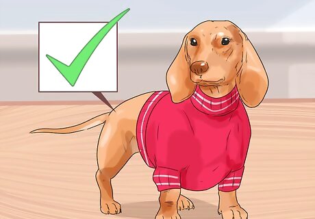 Dress up your dog. You can get a cute outfit for your dog, especially one appropriate for a holiday or other festive occasion. Dressing your dog can also have practical purposes, like giving your short-haired dog a jacket or sweater to keep it warm. Try using outfits or sweaters that don’t restrict your dog’s movement at all. Go for size-appropriate dog clothes that are marked for your dog’s breed. Avoid those that cover any part of your dog’s legs, as these are more likely to bother your dog.