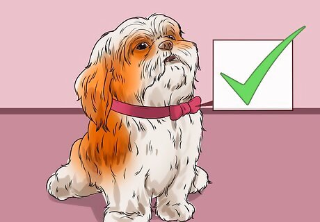 Put bows or a bandana on your dog. Accessories can be a fun way to finish up your dog’s makeover. If your dog is a short-haired breed, you can use special bows with a gentle adhesive available at your local pet store. You can also try using bows with elastics that attach to your dog’s ears. If your dog is too macho for bows, a simple bandana loosely tied around its neck adds lots of personality. If you want your dog to get used to accessories, try using them as early as you can. A puppy will get used to accessories more easily than a fully grown dog. Try offering a treat when you put the accessory on your dog to create a positive association.