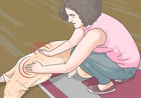Massage your dog. Take ten minutes to pamper your dog with a gentle massage. Open your hands and use your flat palms to slowly rub all over its body. Apply gentle compressions with your palm around its rear and shoulders to remove muscle stiffness. Use your fingertips to softly massage behind its ears and around its neck.