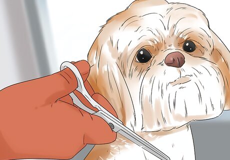 Trim your dog’s coat. Home trimming is best for those with some experience maintaining a dog’s coat. Use good pair of dog clippers (not human clippers) if your dog is too shaggy, but avoid shaving it down completely. If you have grooming experience, you can also use a pair of scissors to trim the coat, as long as you’re confident you can trim evenly. If you’re not sure about your scissor skills, use clippers to trim the coat or just hire a professional. If you’re trimming your dog’s coat at home and want more information about conforming to breed standards, try searching for a local breed club or directory online. Check your breed club for standards, best grooming techniques, and information about your dog’s coat type.