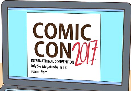Draft an itinerary. Review your convention schedule to get an overview of the weekend's many events and activities, then decide which to check out. There probably won’t be enough time to investigate every booth, panel, or exhibit, so choose carefully. Keep your expectations realistic—you’ll most likely only have time for about three big events per day. Use the "My Schedule" feature on the Comic Con website to see what the convention has in store and pick out the exhibits that you're most excited about. Don't be too bummed if you fail to scratch off one or two of the items on your list. There's no way anyone can see it all. Besides, your attendance qualifies you for advance pre-registration to next year's convention!