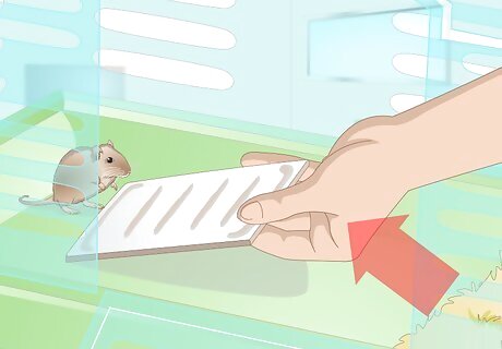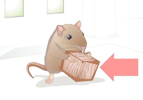 Give your gerbil a rough surface. While the floor of your gerbil's living quarters should be lined with something soft and comfortable (like wood chips), your gerbil will also need a small, rough-surfaced object in one corner of his cage or tank. This is to help wear down his claws so they do not become overgrown. A hand-sized stone or the backside of a bathroom tile would make an excellent scratching surface. A running wheel may also help your gerbil's nails trimmed, but be sure the wheel is a continuous surface and not a wire bar surface.