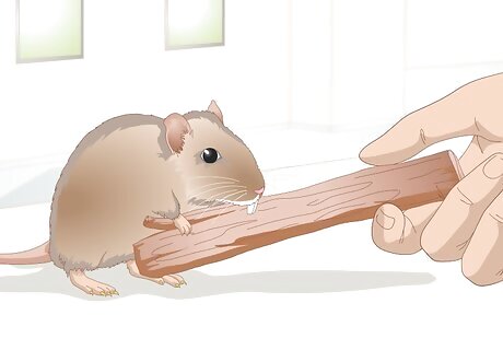 Give your gerbil a wooden branch. If you're skeptical of buying chew toys or just want to save some money, a small branch from a fruit tree is a great option for your gerbil. It will allow him to chew as much as he wants to keep his teeth in check. Apple trees make an ideal wood for gerbils. You can also give your gerbil willow, beech, birch, or pine branches. If you give your gerbil a wooden branch, make sure the tree was not sprayed with any pesticides. These can cause serious health problems for your gerbil, so make sure the wood is clean and untreated.
