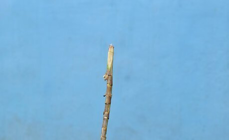Remove all the leaves, including the tip. Also remove the young shoots growing from the main stem. Do not damage the buds.