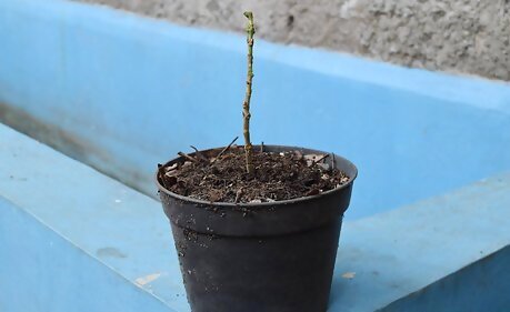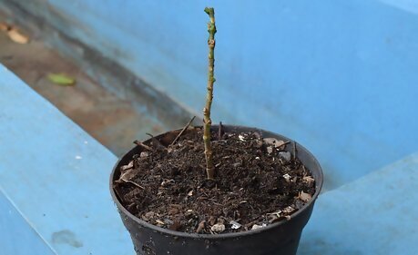 Immediately put the bottom of the cuttings into the hole you've made. Press the soil gently and place in a warm position. Water sparingly.