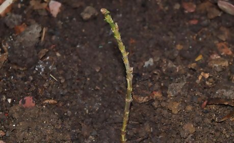 Look for a stem that is already mature but still green inside. Scrape off the bark to see if green or not. It should be at least pencil thick.