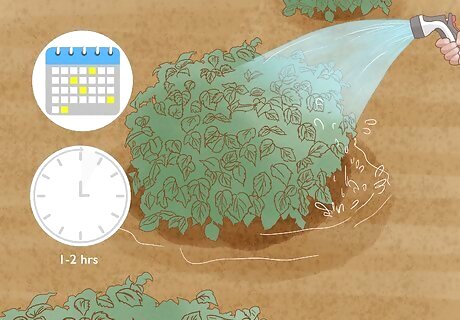 Water plants weekly. Generally, you want the soil around your plants to be damp in summer and dry in winter. A soaker hose, where water seeps out of a hose line to water plants, should provide enough moisture for your berries if used for an hour or two every week. In some cases, like during heat or dry spells, you may need to water your berries more than usual.