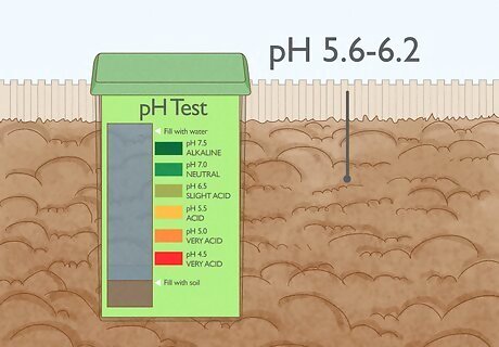 Check the pH of the soil. Most berries do best in slightly acidic soil, and raspberries flourish with a pH rating between 5.6 and 6.2. You can purchase pH testing kits at your local nursery or home center, but you might also check out other methods as well. You should be able to find soil pH testing forms, bags, and instructions at your local agricultural extension office as well. In most cases, you can easily lower the pH level of your soil by mixing granular sulfur with it. This is available at most nurseries and home centers.