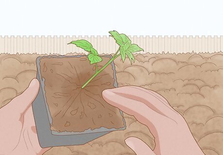 Grow plants from seeds. Seeds should be sown according to their package instructions in a plastic peat pot with sterile soil that is low in nutrients at about mid-winter. Space seeds one inch apart and then use your finger to push them about an inch (2.5 cm) into the ground. Cover seeds with a thin layer of loose soil/sand and store them in a dim, cool place indoors. Keep the seeds lightly moist with a spray bottle. Place the seeds outside in partial sunlight when temperatures reach at least 60ºF (15.6ºC). Seeds should be transplanted into your garden after growing at least one inch in height and developing leaves.