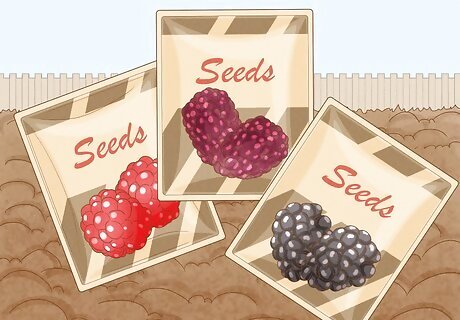 Purchase grown raspberry plants, alternatively. You'll want these to be at least one year old. Cultivated plants come in two basic types: those with bare roots covered in plastic peat containers and tissue-cultured plants. Check with the nursery or home center where you purchase seedlings to make sure they are certified disease-free and have been propagated from virus-indexed stock.