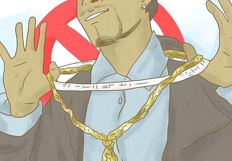 Dress down. You don't need to go out of your way to look ratty, but avoid obviously expensive clothing. Chances are you'll be negotiating over cheap items, and a fancy suit or dress tells the seller you can afford to pay full price. Don't forget to remove flashy jewelry and watches for the same reason.