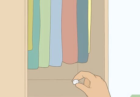 Place naphthalene balls in your wardrobe to keep moths away. Naphthalene balls have special chemicals in them that repel moths, keeping the moths from eating through the fabric of your sarees so they stay in great condition. Avoid putting the naphthalene balls directly on the saree fabric because it could cause damage and instead just place them inside your wardrobe. Purchase naphthalene balls from your local big box store.