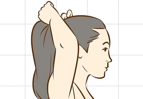 Pull your hair back into a ponytail, if the length allows, or simply push back with a headband. This is optional.