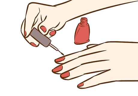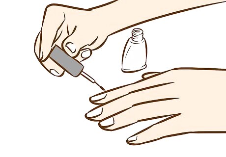 Apply a base coat. Paint two coats of polish to nails, allowing dry time between coats. Do nail art if you wish.