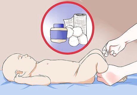 Be prepared for the care required during post-surgery healing. This is a crucial time for your son in which he’ll need extra care to ensure his circumcision heals properly. This is a major issue that will affect him for the rest of his life so you’ll need to be diligent in your care after the procedure to reduce the risk of scarring or other damage that could affect him into adulthood. Keep the penis clean. Keep the area covered with a healing lotion, such as petroleum jelly, perhaps on a gauze wrapped (but never taped) around his circumcised penis. Know how to stem minor bleeding, specifically using sterile contact methods. Add a little pressure to the area that is bleeding.