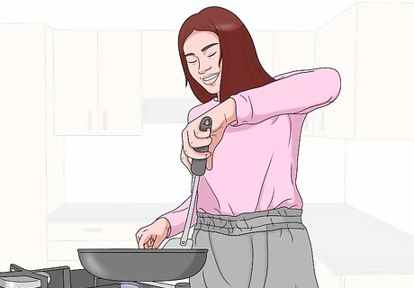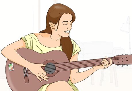 Make something unique to use your creative side. This could mean playing an instrument to create your own song, writing a story, or painting a picture. Get crafty by choosing a medium that you love or are interested in learning. Show off your carpentry skills by building a table or shelf. Knit a scarf, tie-dye a T-shirt, or sketch pictures in a sketchbook.