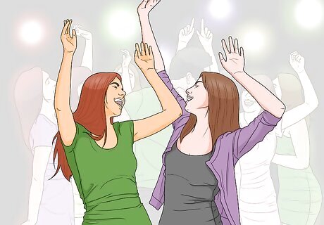 Dance along to the music with friends. It's not necessary to be drinking in order to feel comfortable dancing. As soon as you start to dance, you'll actually feel just as happy and free as people who are drinking, due to the endorphins that dancing releases. Grab a friend and head to the dance floor! Don't worry about being an awkward dancer and just have fun.
