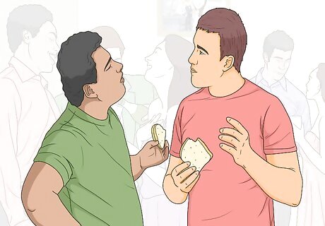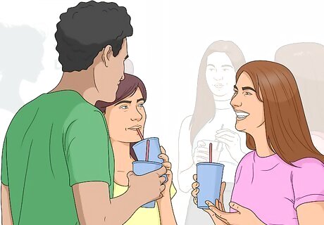 Engage in conversations with people around you. While it's normal to feel like the odd one out at a party where everyone else is drinking, going up to people and starting conversations will help put you at ease. Ask people about their job or school, what show they've been watching recently, or what their plans are for the upcoming holiday. If you're going up to someone you don't know, introduce yourself by saying your name and asking for theirs.