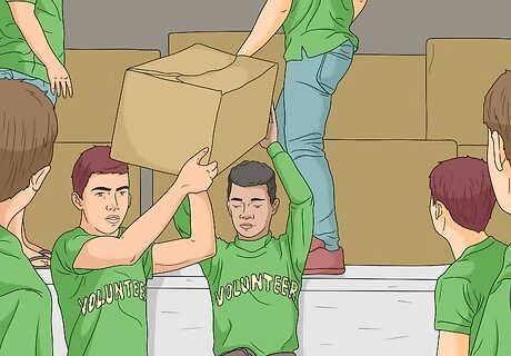 Volunteer to help people in need. The great part about this is whether you bring a friend along with you or not, you’ll still be with others! Collect food for a food drive, play bingo with the elderly, or spend an afternoon working in a community garden. Volunteer to help with something you’re passionate about, like raising money for cancer research or cooking homemade meals for the homeless. Volunteer with an organization that does things like teach children to read or build homes for people in need. To find volunteering opportunities near you, do an online search to find events going on in your area or places that need assistance.