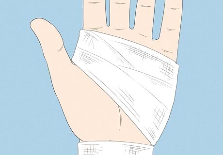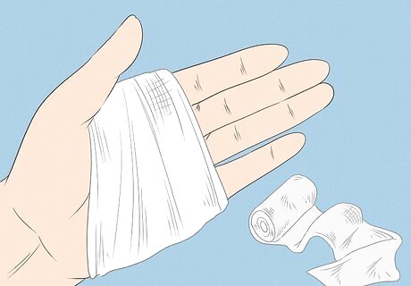 Wrap the area with a kerlix bandage. Kerlix bandages are made of thick, stretchy gauze. They will help to protect the skin tear and keep it moist. Wrap the kerlix bandage over the dressing to hold it in place. Kerlix sticks to itself, so you probably won’t need to tape it in place. If you have to use medical tape to keep it from unwrapping, make sure you only stick it to the bandage and not to the skin. You can also hold the dressing in place with a stockinette, which is a tube-shaped bandage that fits in place without needing to be wrapped or taped down.