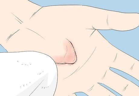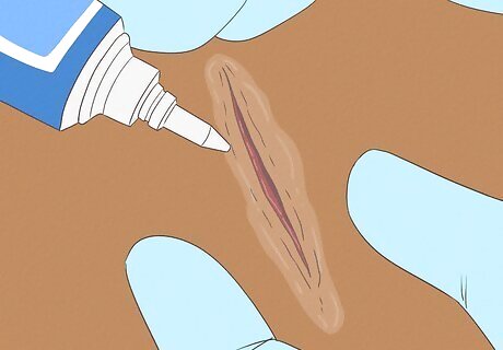 Allow the skin tear to air dry. This may take 10 to 20 minutes. You can also use a soft towel to pat the area dry, being careful not to rub or scrub the area. If you decide to pat the area dry, avoid using tissue, a cotton ball, or any other material that could leave fragments behind in the wound.