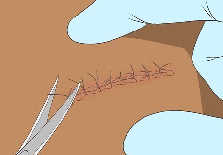 Discuss getting stitches for a severe skin tear. The doctor may also suggest stitches on the skin tear to close the skin. This may be an option if the skin tear is severe and is at risk of infection. The doctor will use a local anesthesia on the area before they stitch it up. Your doctor will give you instructions about how to care for your stitches and when to return to have them removed. Depending on where the wound is located, the stitches may need to stay in anywhere from a few days to 2 weeks.