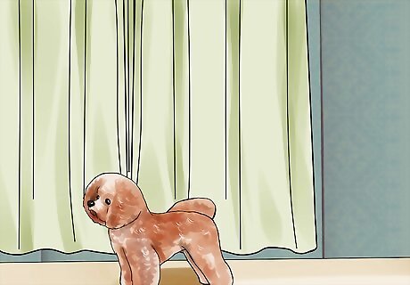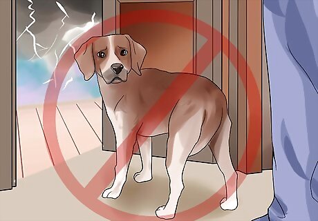 Minimize the stimulation. Insulate your dog from the bright lights and loud noises of storms and fireworks. Bring the dog indoors, and close all windows and doors. Draw the curtains so the dog can't see the flashes. If appropriate (not during an electrical storm) put the TV on with the volume low, to act as a distraction. Remember to act normally and go about your normal business so as to send out the message that everything is OK and you aren't worried.