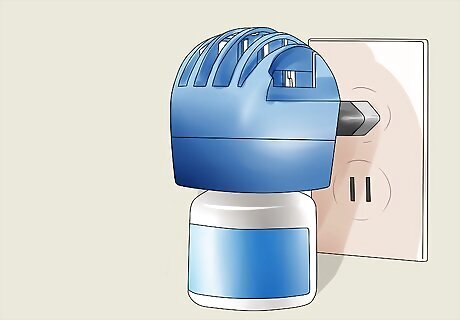 Use pheromones. When a lot of fireworks are anticipated plug-in DAP diffuser in your house beforehand. These devices give off a synthetic dog pheromone that makes dogs feel safe and secure. The diffusers help to give an anxious dog heightened feelings of security, and can diffuse some of its anxiety.