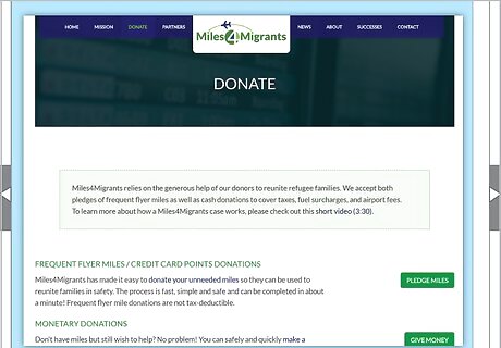 Donate air miles to fly immigrants to their loved ones. There are several organizations that are encouraging people to donate their frequent flyer miles to be used to reunite family members that are far from one another. Some of these organizations include Miles4Migrants and Immigrant Families Together. Consider donating your air miles, as well as your hotel or car rental rewards. Even if you don't have miles to give, websites like https://miles4migrants.org/donate/ still let you give monetary donations to help make a difference. Lawyer Moms of America is another group that donates air miles.