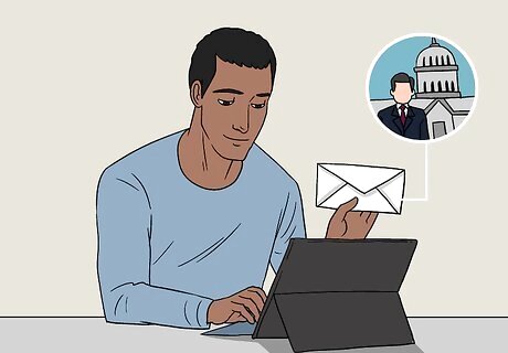Contact government representatives encouraging them to take action. This includes Congress, your mayor, and your local representatives. Send them an email, call their office, or send them a letter in the mail telling them your thoughts on the immigration situation and asking them to use their influence to create change. You might write to your representative saying, "Hello, I'm writing to you in hopes that you'll support the fight for immigrants' rights," continuing on with your letter by adding a couple details about what you're hoping they'll accomplish. Do a quick online search to find out who your local representatives are, as well as how to contact them most efficiently.