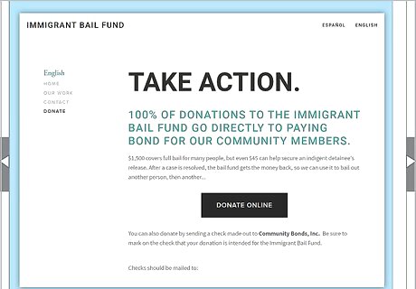Contribute towards community bail funds to help reunite families. Even if an immigrant has the option of posting bail, they likely won't have the money to be able to pay it. By donating to community bail funds like Immigrant Bail Fund, found at https://www.immigrantbailfund.org/take-action, you'll help release immigrants from detainment. While bail can cost anywhere between $1,500 and $80,500 USD, even donating a small amount will help. Other organizations to donate to include Freedom for Immigrants National Bond Fund and RAICES Bond Fund.