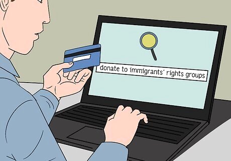 Give money to organizations doing on-the-ground work. There are lots of organizations that are providing direct help to immigrants by doing things like providing shelter for immigrants, planning protests, and educating immigrants on their rights. Donate to one like Border Angels, Amnesty International, or Doctors without Borders. Go online and type “donate to immigrants’ rights groups” to see results for which organizations accept monetary donations. Other organizations that aren't US-based include the Australian Red Cross, the Canadian Council for Refugees, and Crossing Borders.