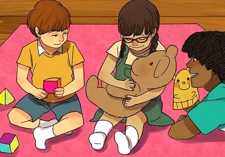 Set up regular play dates. You can also socialize your blind or visually impaired child in a less formal setting. For example, plan a play date with other kids in your neighbourhood. You could invite a few kids over to play while you supervise them, or you could go to a local park and allow the kids to play together. You can also incorporate activities specifically for blind or visually impaired children, such as arts and crafts or sensory experiences.