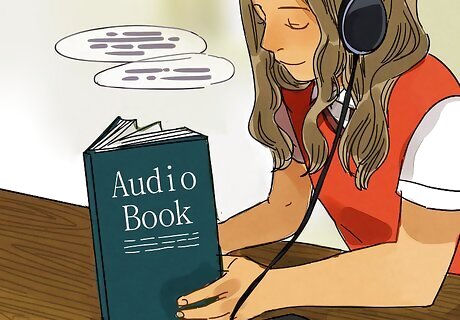 Download audio textbooks. You can download a variety of different audio books including: K-12 textbooks, classic literature, popular fiction, and study aids. These resources are excellent for blind or visually impaired children because they allow them to listen to and access material without relying on visuals.
